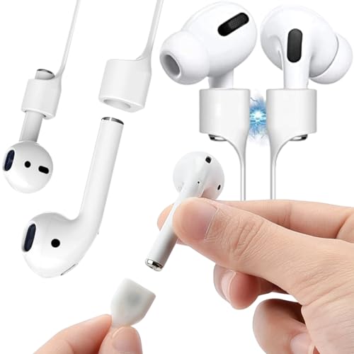 Correa Magnética Compatible con AirPods Pro 1 2 3 – Cordón Antipérdida Deportiva en Silicona Blanca – Collar Seguro y Cómodo para Auriculares Apple – Accesorio con Ganchos y Sistema Magnético
